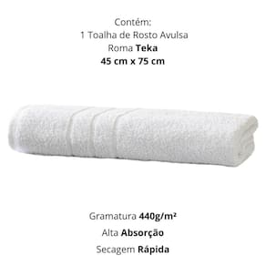 Contém: 01 peça 01 toalha de rosto profiline roma 0,45x0,75m Alta absorção e maciez Resistência à lavagem industrial e ao cloro Gramatura: 440g/m Cor: branca