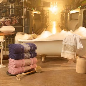 A hora do banho é o momento em que relaxamos e revigoramos nossas energias. Então, aproveite ao máximo esse momento e tenha em mãos a nossa toalha La Vie com um toque macio. A barra com ornamentos em fios dourados é o grande destaque dessa peça. Além dos fios dourados, a barra da Toalha La Vie é aveludada, produzindo um efeito de veludo criado por meio do tosquiamento das felpas. Na toalha La Vie, apresentamos o que há de melhor no mercado. Produzida com o melhor fio que existe, o fio 24 penteado e 100% Algodão, ela é o casamento perfeito para entregar o melhor na hora de se secar. Sua gramatura é de 450 gramas por metro quadrado e cada toalha de rosto pesa aproximadamente 200 gramas. O tamanho desta toalha é 50cm de largura por 80cm de comprimento. Possui o corpo inteiro da toalha em 100% Algodão (com exceção da barra decorativa), dando maior poder de absorção e maciez. Com a toalha La Vie, você deixa seu banheiro decorado e proporciona maior conforto para você e sua visita.