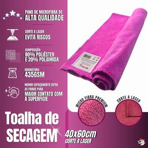 Toalha de secagem premium com alta capacidade de absorção. Gramatura 435gsm, ideal para remoção de água com segurança, e também na remoção de resíduos no polimento e no uso da solução de ipa evitando marcas na pintura. Possui costura reforçada nas bordas para maior durabilidade. Toalha de secagem pink Premium 40x60cm - 435gsm Composição: 80% poliéster e 20% poliamida. Utilize detergentes de ph neutro, ou Produtos específicos para a lavagem; - não utilize alvejantes, amaciante e ferro de Passar; - evite torcer a microfibra para não Ocasionar o rompimento dos filamentos, Diminuindo sua vida útil; - evite expor ao sol para não ressecar as Fibras do tecido. A nr estética oferece uma de 7 dias em seus produtos Marca: Não Informado Ean: 7898132321970
