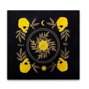 Toalha De Tarô para Leitura Brilho Preto/Dourado 70CM - Amarelo