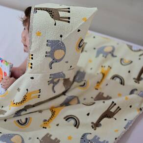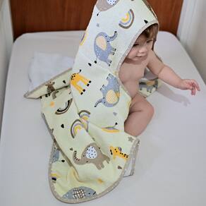 Toalha A toalha de banho para bebê é um item indispensável no enxoval do seu pequeno. Feita com tecido macio e absorvente, proporciona uma secagem suave e rápida após o banho, mantendo a pele delicada do bebê protegida e livre de irritações.