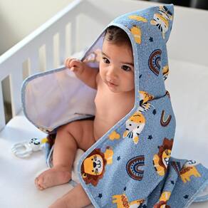 Toalha Estampada Com Capuz com Forro 68 cm x 68 cm - Leão Azul
