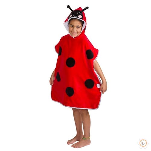 Agora sair da piscina, do mar e do banho vai ser superdivertido e bem quentinho com essa toalha com capuz de joaninha! Ela é fechada na frente do tipo "vestir" para os pequenos ficarem bem protegidos!