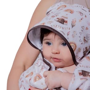 Medidas: 80 cm x 70 cm tamanho ideal para envolver seu bebê com aconchego Forro de fralda 100% algodão: super absorvente e com toque delicado na pele sensível Diversas estampas divertidas e delicadas: para todos os estilos e gostos Capuz com orelhinhas: charme extra e proteção para a cabecinha do bebê Acabamento premium: maciez, durabilidade e excelente absorção