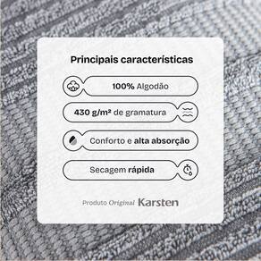 Este kit inclui a toalha de piso Metrópole, da Karsten. Também feita em 100% algodão, e com uma gramatura incrível de 500g/m².