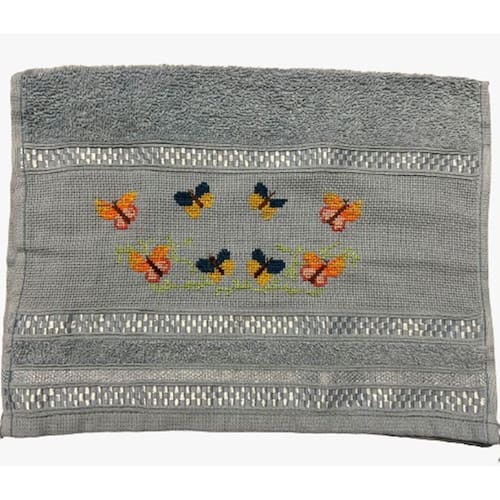 Toalha Lavabo Ponto Cruz com Borbado da Vovó Alice Borboleta Azul -