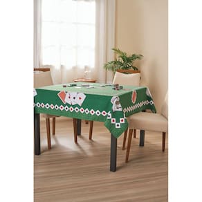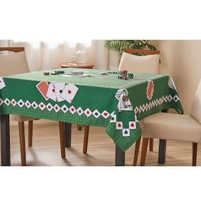 Para os amantes do baralho, apresentamos a toalha de mesa jocker, uma toalha clássica para uso em jogos que trazem ainda mais empolgação para você e seus amigos, uma toalha aveludada, macia que dára um toque de requinte à sua mesa além de suas estampas de cartas e detalhes que referenciam os jogos.