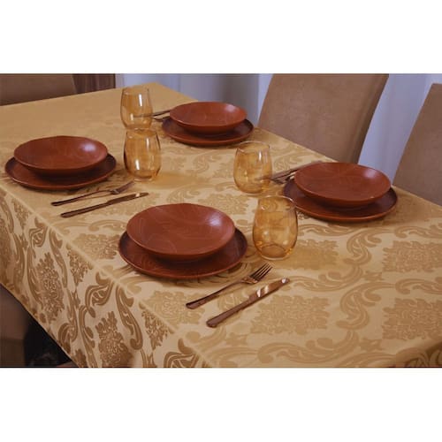 A Toalha De Mesa Quadrada 4 Lugares Tecido Jacquard 1,35X1,50 possui medidas de 1,35 x 1,50 metros, sendo ideal para mesas quadradas de até 4 lugares.