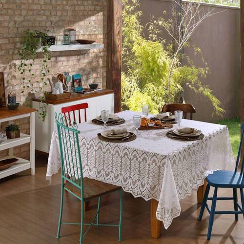 A toalha de mesa quadrada renda interlar clássica marfim arabesco leva a beleza da renda para sua mesa e deixa o momento da refeição em família ainda mais agradável. Seu tema arabesco leva para sua mesa todo o requinte e delicadeza dos desenhos, deixando suas refeições mais especiais.