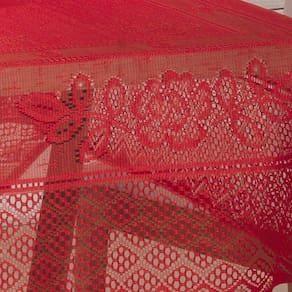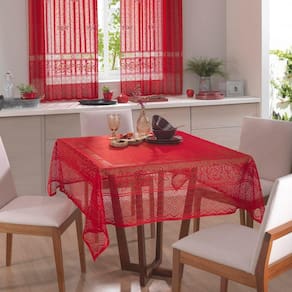 A toalha de mesa quadrada renda interlar color vermelha leva a beleza da renda para sua mesa e deixa o momento da refeição em família ainda mais agradável. Seu tema floral leva para sua mesa todo o frescor da natureza, deixando suas refeições mais especiais.