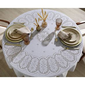 A toalha de mesa redonda renda interlar clássica branca arabesco leva a beleza da renda para sua mesa e deixa o momento da refeição em família ainda mais agradável. Seu tema arabesco leva para sua mesa todo o requinte e delicadeza dos desenhos, deixando suas refeições mais especiais.