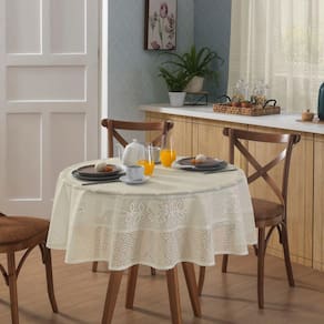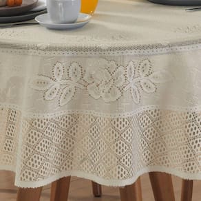 A toalha de mesa redonda renda interlar valência marfim leva a beleza da renda para sua mesa e deixa o momento da refeição em família ainda mais agradável. Seu tema floral leva para sua mesa todo o frescor da natureza, deixando suas refeições mais especiais.