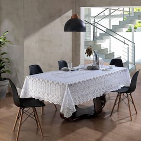 A toalha de mesa retangular renda interlar clássica branco arabesco leva a beleza da renda para sua mesa e deixa o momento da refeição em família ainda mais agradável. Seu tema floral leva para sua mesa todo o frescor da natureza, deixando suas refeições mais especiais.