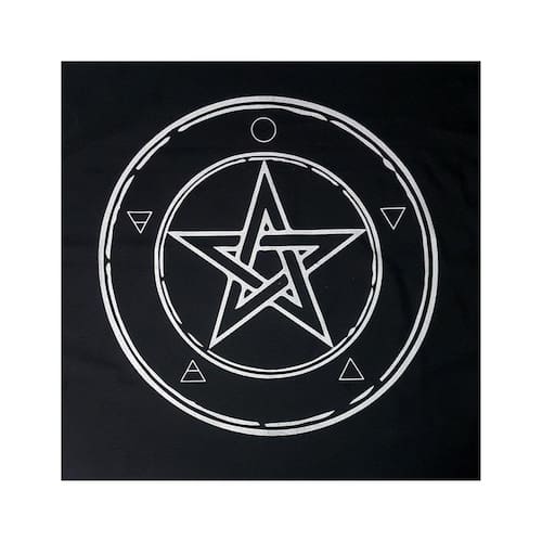 Dentre os inúmeros símbolos criados pelo homem, se destaca o pentagrama, que evoca uma simbologia múltipla, sempre fundamentada no número 5, que exprime a união dos desiguais. As cinco pontas do pentagrama põem em acordo, numa união fecunda, o 3, que significa o princípio masculino, e o 2, que corresponde ao princípio feminino. O pentagrama sempre esteve associado com o mistério e a magia. Ele é a forma mais simples de estrela, que deve ser traçada com uma única linha, sendo conseqüentemente chamado de "Laço Infinito". A toalha forma o solo sagrado para práticas ritualísticas, criando assim uma ligação entre você e o universo.