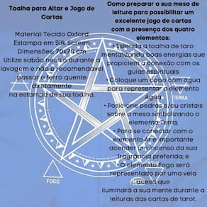 A Toalha Tecido Jogo de Cartas Pentagrama da Bialluz são ótimas para te auxiliar durante o jogo de cartas, por ser um elemento que proporciona alta elevação enérgica. Você também pode usar para decorar seu altar, com certeza ficara ainda mais lindo e com muita energia positiva. Nossa toalha possui altíssima qualidade na impressão com pontos de brilho e é confeccionada em tecido oxford que não amassa e tem longa durabilidade.