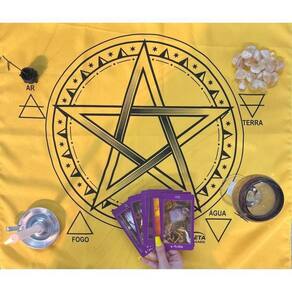 A Toalha Tecido Jogo de Cartas Pentagrama da Bialluz são ótimas para te auxiliar durante o jogo de cartas, por ser um elemento que proporciona alta elevação enérgica. Você também pode usar para decorar seu altar, com certeza ficara ainda mais lindo e com muita energia positiva. Nossa toalha possui altíssima qualidade na impressão com pontos de brilho e é confeccionada em tecido oxford que não amassa e tem longa durabilidade.