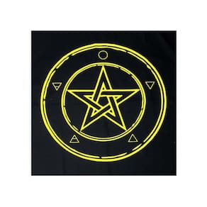 Dentre os inúmeros símbolos criados pelo homem, se destaca o pentagrama, que evoca uma simbologia múltipla, sempre fundamentada no número 5, que exprime a união dos desiguais. As cinco pontas do pentagrama põem em acordo, numa união fecunda, o 3, que significa o princípio masculino, e o 2, que corresponde ao princípio feminino. O pentagrama sempre esteve associado com o mistério e a magia. Ele é a forma mais simples de estrela, que deve ser traçada com uma única linha, sendo conseqüentemente chamado de "Laço Infinito". A toalha forma o solo sagrado para práticas ritualísticas, criando assim uma ligação entre você e o universo.