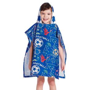 Com estampa alegre de futebol, o poncho de praia infantil garante estilo e diversão, além de ser fácil de vestir. O capuz ajuda a proteger contra o vento e o frio, tornando a peça ainda mais funcional.