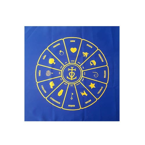 Toalha Roda Cigana para Tarô Cigano Místico Azul Amarelo