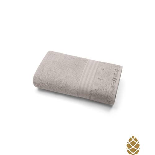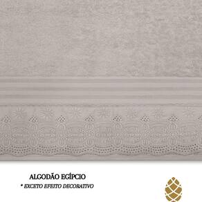 Toalha felpuda com aplicação de Renda Bordada. A delicadeza da renda aplicada na toalha confere ao produto um visual requintado.