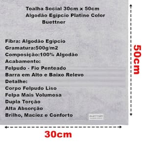 Toalha Social Buettner Platine Algodão Egípcio Color 30x50cm Prata Toalha Social (Lavabo) felpuda, 100% Algodão Egípcio no tamanho 30cm x 50cm com 500g/m da linha Nobre e da marca Bouton, modelo Platine, produzida em teares especiais que possibilitam desenvolver desenhos tanto no corpo quanto nas barras das toalhas. A toalha Platine possui corpo liso com bastante felpa e uma barra discreta e suave com linhas horizontais, apenas para dar um charme ao expor ela. Seu corpo liso possui alta absorção, e sua barra minimalista possui detalhes horizontais, destacando um tom de charme e nobreza, proporcionando uma linda exposição no banheiro, traduzindo refinamento e muita sofisticação ao ambiente. Suas cores buscam remeter aos tons nobres da estação. Toalha Social Buettner Platine Algodão Egípcio Color 30x50cm Prata