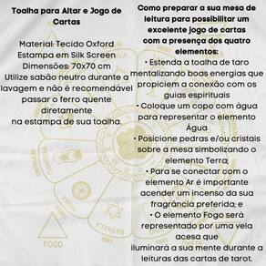A Toalha Tecido Jogo de Cartas Cigana da Bialluz é ótima para te auxiliar durante o jogo de cartas, por ser um elemento que proporciona alta elevação enérgica. Você também pode usar para decorar seu altar, com certeza ficara ainda mais lindo e com muita energia positiva. Nossa toalha possui altíssima qualidade na impressão com pontos de brilho e é confeccionada em tecido oxford que não amassa e tem longa durabilidade.