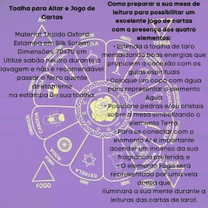 Toalha Tecido Jogo de Cartas Cigana 70 x 70 cm Roxa A Verdadeira e Tradicional Toalha Cigana desenvolvida para jogos de cartas e Altar. Esta é a Legítima Toalha de Mesa Para jogos de cartas, deixando sua mesa bonita, moderna e sofisticada e intuitiva. Desenvolvida pensando em deixar o seu jogo de cartas mais confortável e prático.É composta por tecido, linda estampa, o que oferece ainda mais requinte ao teu jogo. Boa Qualidade de impressão, podendo ser utilizada em altares, desenvolvida especialmente para jogos de cartas intuitivas. Características: - Composição: Tecido Oxford- Cor bem definida - Quadrada 70 cm x 70 cm- Extremamente leve, suave e confortável-lavável em máquinaImagens meramente ilustrativas Embalagem de Envio: Envelope plástico, conforme necessidade do produto. Respostas das dúvidas mais frequentes na ordem:R1: Já realizamos milhares de entregas em todo o Brasil, somos especialistas no que fazemos.R2: Assim que seu pedido for despachado, esta plataforma envia para você o código de rastreamento.R3: Enviamos o produto 100% inspecionado e conferido em nosso checkout e são embalados em embalagem de papelão e plástico bolha.R5: Iremos despachar o seu produto o mais rápido possível, assim que for confirmado pela plataforma, enviamos em até 24h.R6: Nós queremos a sua satisfação, qualquer problema iremos te auxiliar em nossos canais de comunicações. Marca: Meta Atacado