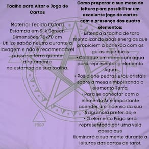 Toalha Tecido Jogo de Cartas Pentagrama 70 x 70 cm Roxa A Verdadeira e Tradicional Toalha de Mesa Pentagrama para jogos de cartas e Altar Esta é a Legítima Toalha de Mesa jogos de cartas, deixando sua mesa bonita, moderna e sofisticada e intuitiva. Desenvolvida pensando em deixar o seu jogo de cartas mais confortável e prático.É composta por tecido, linda estampa, o que oferece ainda mais requinte ao teu jogo. Boa Qualidade de impressão, podendo ser utilizada em altares, desenvolvida especialmente para jogos de cartas intuitivas. Características: - Composição: Tecido Oxford- Cor bem definida - Quadrada 70 cm x 70 cm- Extremamente leve, suave e confortável- Lavável em máquina Lava e SecaImagens meramente ilustrativas Embalagem de Envio: Envelope plástico, conforme necessidade do produto. Respostas das dúvidas mais frequentes na ordem:R1: Já realizamos milhares de entregas em todo o Brasil, somos especialistas no que fazemos.R2: Assim que seu pedido for despachado, esta plataforma envia para você o código de rastreamento.R3: Enviamos o produto 100% inspecionado e conferido em nosso checkout e são embalados em embalagem de papelão e plástico bolha.R5: Iremos despachar o seu produto o mais rápido possível, assim que for confirmado pela plataforma, enviamos em até 24h.R6: Nós queremos a sua satisfação, qualquer problema iremos te auxiliar em nossos canais de comunicações. Marca: Meta Atacado