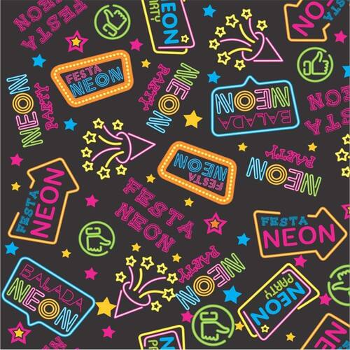 TOALHA TNT ESTAMPADA FESTA NEON 0,68 X 0,68 m C/ 5 PEÇAS