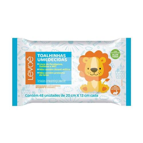 Toalha umedecida levoe 48un As toalhinhas umedecidas levoé foram especialmente desenvolvidas para a higiene da pele delicada do bebê. Sua fórmula suave é enriquecida com manteiga karité, extrato de aloe vera e vitamina e que hidratam e protegem a pele do bebê. As toalhinhas são ideais para cada troca de fraldas e excelentes também para a limpeza das dobrinhas, perninhas e pescoço, tanto em casa como em passeios. Sua formulação é dermatologicamente testada. Marca: Levoe Ean: 7898043364639