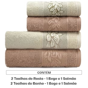 Esse kit contém: - 2 Toalhas de Banho 70 cm X 135 cm (Largura X Comprimento); - 2 Toalhas de Rosto 48 cm X 80 cm (Largura X Comprimento).