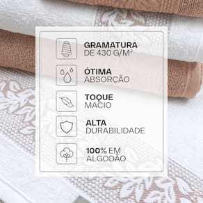 Compostas por 100% algodão, as toalhas possuem qualidade e durabilidade incomparáveis.