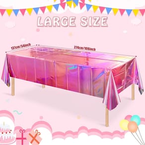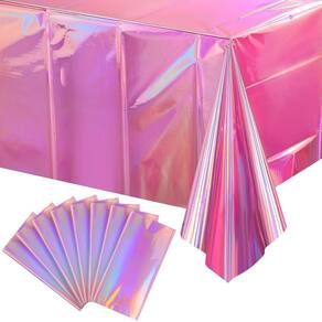 - Mesa impermeável e protegida: a toalha de mesa holográfica rosa é feita de plástico, resistente, impermeável, à prova de óleo, não é fácil de quebrar e desbotar, pode ser aplicada por um longo tempo, é boa para qualquer festa ou evento, protege e decora sua mesa.