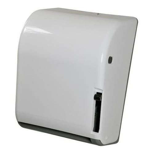 Toalheiro em ABS para papel bobina até 200m possui alavanca que auxilia a liberação do papel, evitando o desperdício.