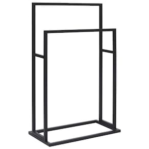 Este moderno toalheiro independente é uma solução de armazenamento útil para secar e exibir suas toalhas. Feito de ferro sólido com acabamento fosco, é funcional e parece moderno, cabendo perfeitamente em qualquer decoração de banheiro.