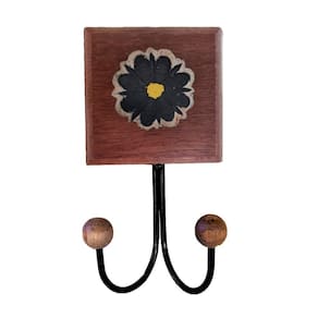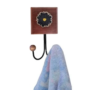 Toalheiro Cabideiro Duplo Flor 3d Rústico Artesanal Ferro Cor Preto