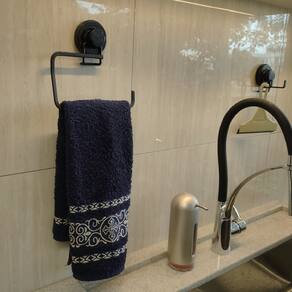 O porta toalha preto com ventosa da Schmitt possui acabamento fosco, é perfeito para dar um toque de charme e requinte ao seu banheiro. Com design compacto e sofisticado permite que se adapte facilmente à decoração já existente. Este porta toalha lavabo preto possui fixação por sucção, dispensando o uso de ferramentas para instalação, evitando furos na parede e sujeira, podendo ser trocado de lugar quando desejar.