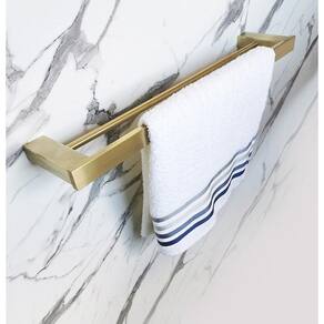 Toalheiro De Banho Duplo Dourado Escovado Em Inox