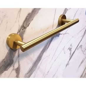 Modelo: Toalheiro de Rosto Redondo Dourado Altura: 3 cm Comprimento: 27 cm Profundidade: 7,5 cm Material: Inox 304