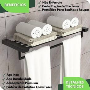 Banheiros modernos exigem produtos de qualidade. Prezando pela sofisticação e elegância, desenvolvemos o Toalheiro Hotel de Parede Toalheiro Hotel de Parede Porta Toalha Duplo Preto Master, onde cada traço foi cuidadosamente desenhado para deixar seu banheiro com um visual clean e sofisticado.