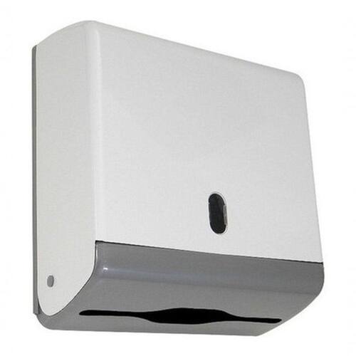 Toalheiro Junior Em Abs P/papel 2 Ou 3 Dobras (n15) Toalheiro junior em ABS para papel interfolha 2 ou 3 dobras.Injetado em plástico ABS branco, visor cristal transparente para controle de reposição do papel e fundo cinza.O sistema de fechamento é feito através de fechadura em plástico ABS, que mantém o produto trancado, evitando, assim o furto do papel, bem como a abertura indevida da tampa do suporte.Acompanha chave plástica e kit contendo buchas e parafusos para fixação na parede.Disponível na cor:N15 Branco/CinzaCapacidade: 600 folhas aproximadamente.Medidas: 285mm (altura) x 255mm (largura) x 120mm (profundidade).