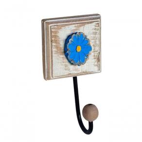 Toalheiro Madeira Ferro Banheiro Flor Branca Cor Azul