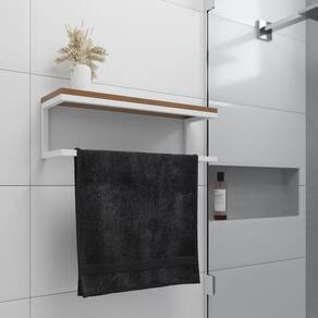 Toalheiro Para Banheiro Estilo Industrial Ita - Branco E Prateleira Imbuia - Cor: Preto