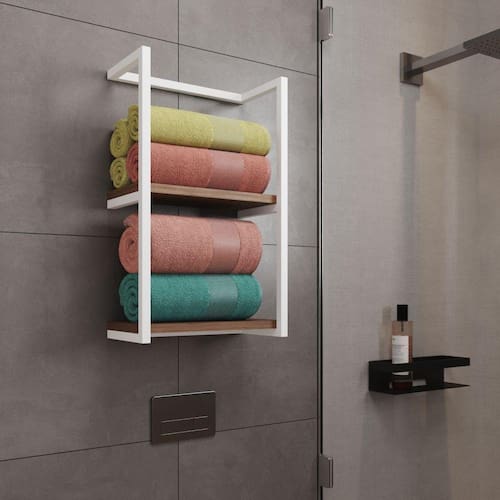 Toalheiro Para Banheiro Estilo Industrial Sahy - Branco E Prateleira Imbuia - Cor: Preto