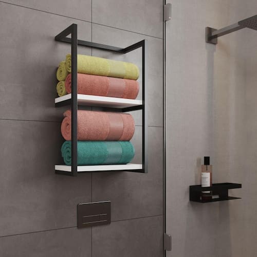 Toalheiro Para Banheiro Estilo Industrial Sahy - Preto E Prateleira Branca