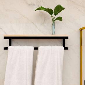 Este suporte para toalha combina a robustez do metalon com a beleza natural da madeira de pinus, proporcionando um suporte elegante e funcional para toalhas no ambiente do banheiro.