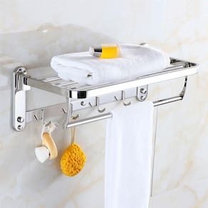 Dobrável, economiza espaço, suporte até 15 kg e ganchos para guardar e secar suas toalhas.