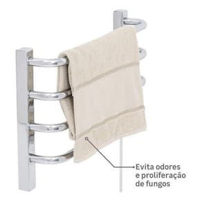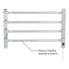 Esse produto possui as seguintes especificações técnicas: - Tamanho: 56x36cm - Capacidade: 1 toalha - Voltagem: 127V - Material: metal - Cor: prata - Acabamento: cromado