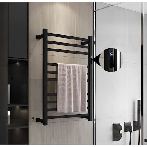 Toalheiro Térmico Preto Fosco em Inox Quadrado Bivolt com Timer Embutido e Fio no Lado Esquerdo
