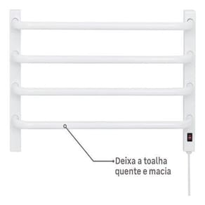 toalheiro Térmico Simples Flape 0737-4 Elegante e funcional para o seu banheiro O toalheiro térmico simples Flape 0737-4 é uma excelente opção para quem busca um toque de sofisticação e praticidade em seu banheiro. Com design moderno e acabamento acetinado, ele se adapta a diversos estilos de decoração. Características Principais: Versatilidade: Ideal para aquecer até 4 toalhas, proporcionando conforto e aconchego após o banho. Segurança: Possui proteção contra ácaros, fungos e bactérias, garantindo um ambiente mais higiênico. Eficiência: Baixo consumo de energia e aquecimento rápido das toalhas. Facilidade de Instalação: Acompanha kit de fixação para instalação na parede. Design: Design moderno e elegante, com acabamento acetinado e cor branca, se adaptando a diversos estilos de banheiro. Durabilidade: Construído em aço carbono, garantindo resistência e durabilidade. Certificação: Possui certificação do Inmetro, garantindo a qualidade e segurança do produto. Especificações Técnicas: Marca: Flape Modelo: 0737-4 Tipo: Toalheiro térmico simples Tensão: 127V 110V Potência: 93W Dimensões: 36cm x 56cm x 12cm Peso: 3,8kg Material: Aço carbono Cor: Branco : 36 meses Benefícios: Conforto: Toalhas sempre quentinhas e secas, proporcionando uma sensação agradável após o banho. Higiene: Elimina a umidade das toalhas, prevenindo a proliferação de bactérias e fungos. Economia: Baixo consumo de energia, reduzindo o custo da sua conta de luz. Estética: Design moderno e elegante que valoriza o ambiente do banheiro. Facilidade de Limpeza: Limpeza simples com pano úmido, sem a necessidade de produtos químicos. Aplicações: Residencial: Ideal para banheiros de casas e apartamentos. Hotelaria: Pode ser utilizado em hotéis, pousadas e outros estabelecimentos hoteleiros. Ambientes Comerciais: Pode ser utilizado em banheiros de escritórios, academias e outros ambientes comerciais. Considerações Importantes: Instalação: A instalação deve ser realizada por um profissional qualificado, seguindo as instruções do fabricante. Limpeza: Limpar regularmente com pano úmido e neutro, evitando o uso de produtos abrasivos. Segurança: Desligar o toalheiro da tomada ao realizar a limpeza ou manutenção.